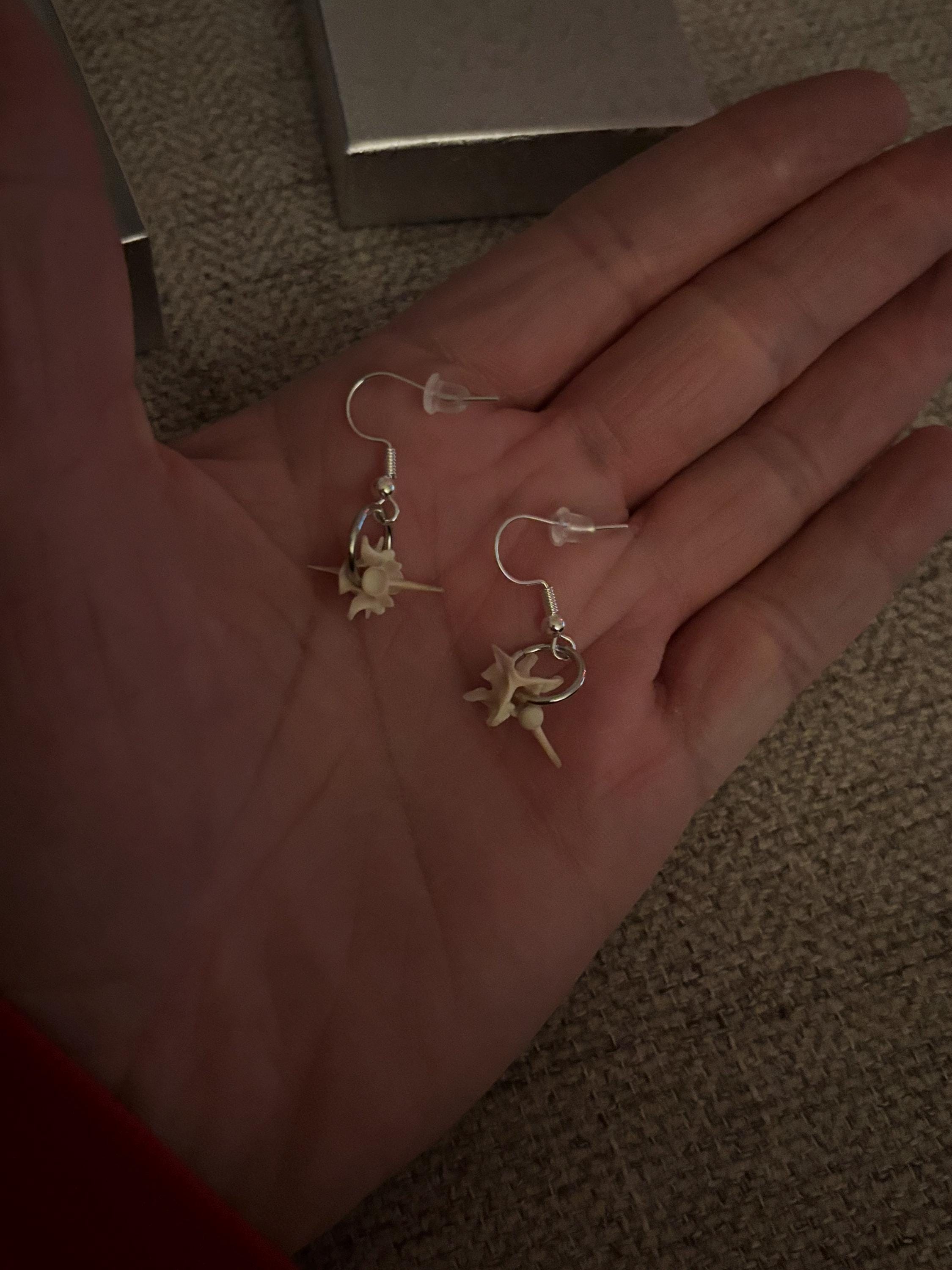These earrings are made from one small sized real snake vertebrae bone, on a nickel free silver ring.