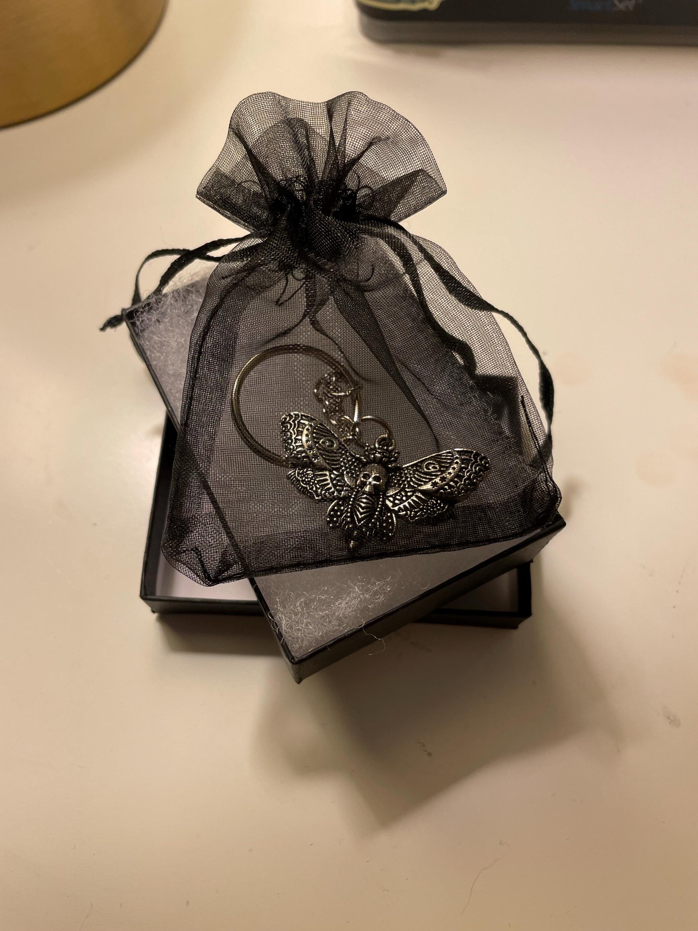 It's a moth keychain! This keychain is silver stainless steel.
